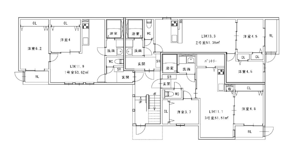 | 間取り | 2LDK | 面積 | 50.62~51.51㎡ |